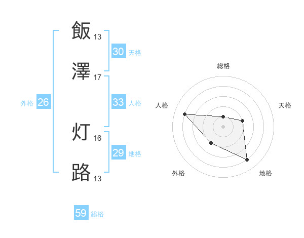 飯澤 灯路さんの総格は59画の1点!