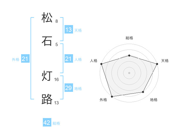 松石 灯路さんの外格は21画の5点!