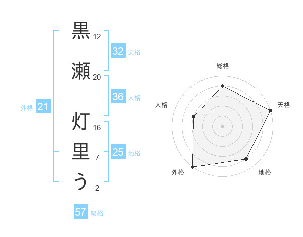 黒瀬 灯里うさんを姓名の画数から五運を鑑定
