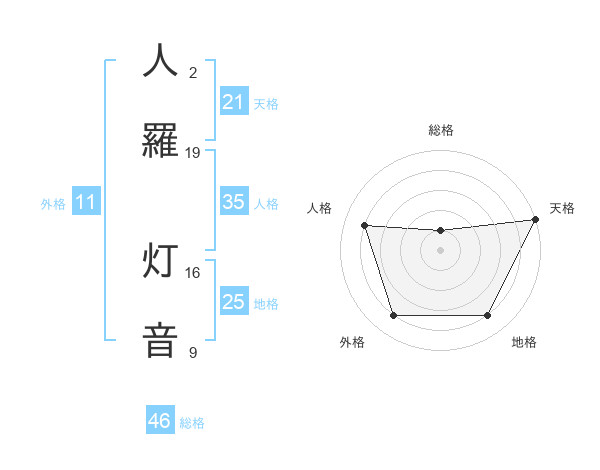 人羅 灯音さんの天格は21画の5点!
