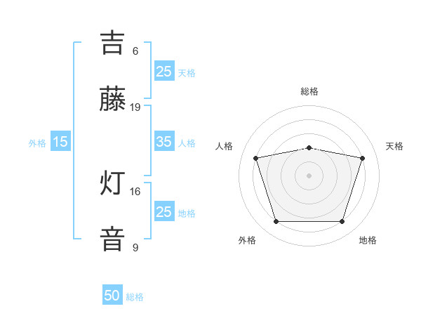 吉藤 灯音さんの総格は50画の2点!