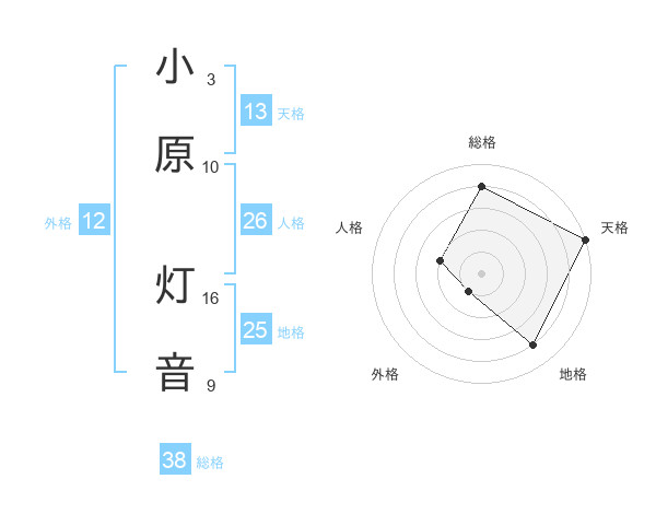小原 灯音さんの総格は38画の4点!