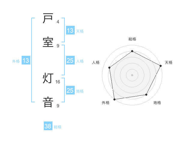 戸室 灯音さんの総格は38画の4点!