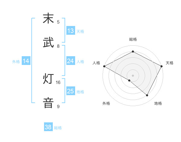 末武 灯音さんの総格は38画の4点!