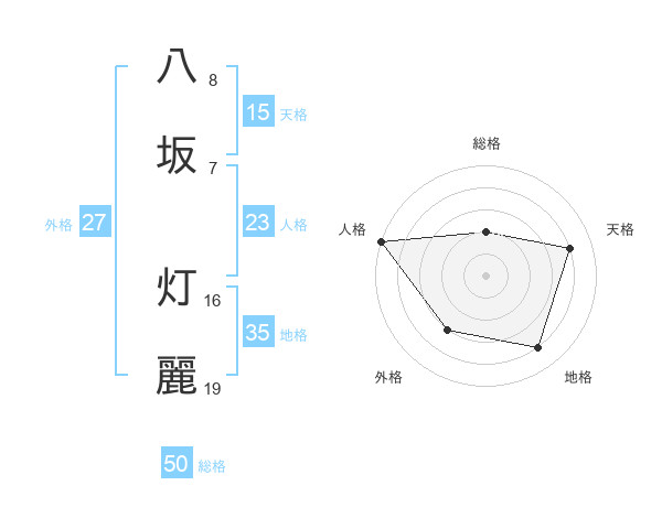 八坂 灯麗さんの総格は50画の2点!