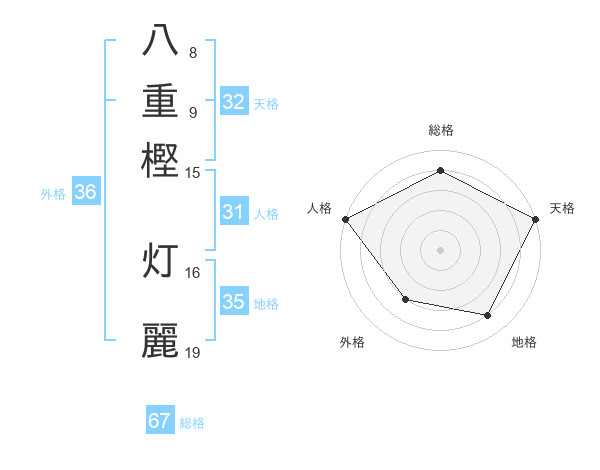 八重樫 灯麗さんの総格は67画の4点!