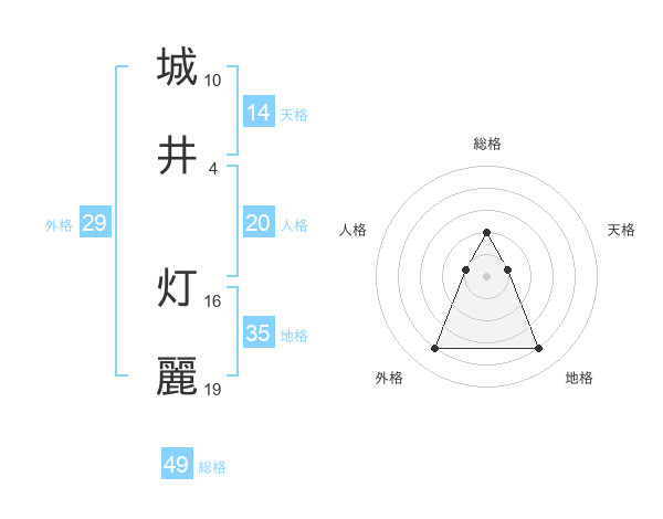 城井 灯麗さんの総格は49画の2点!