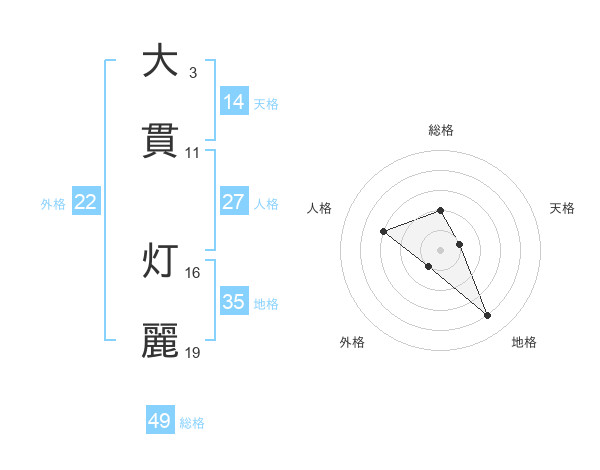 大貫 灯麗さんの外格は22画の1点!
