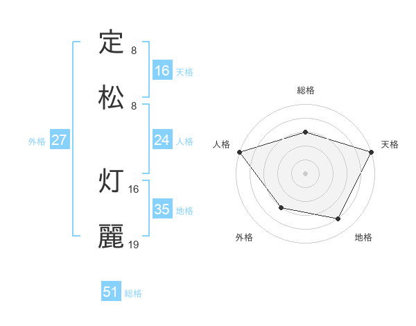 定松 灯麗さんを姓名の画数から五運を鑑定