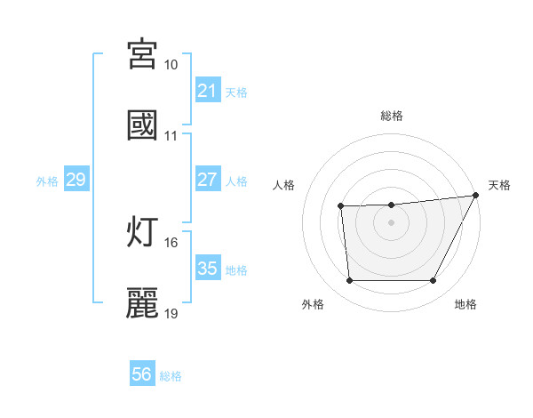 宮國 灯麗さんを姓名の画数から五運を鑑定
