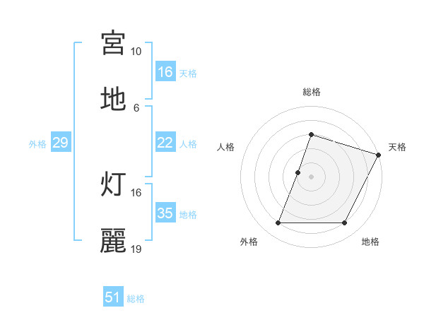 宮地 灯麗さんの総格は51画の3点!