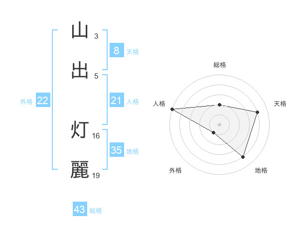 山出 灯麗さんの外格は22画の1点!