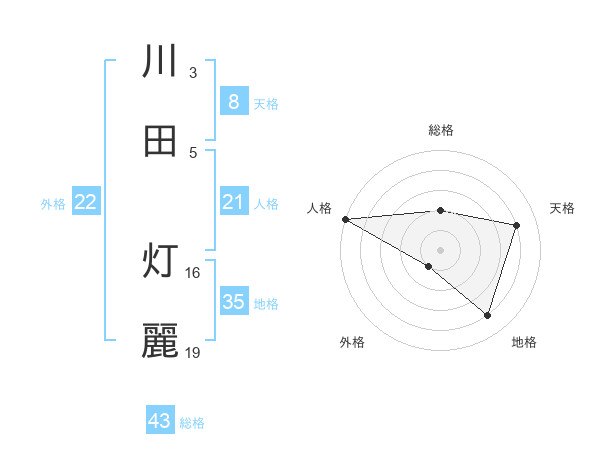 川田 灯麗さんを姓名の画数から五運を鑑定