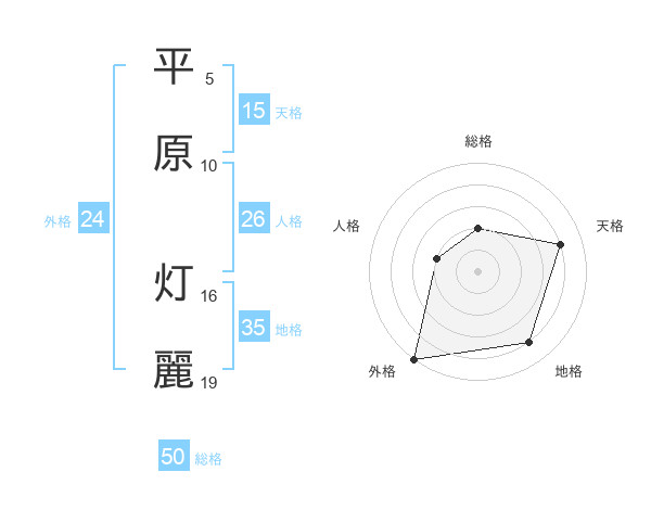 平原 灯麗さんの総格は50画の2点!