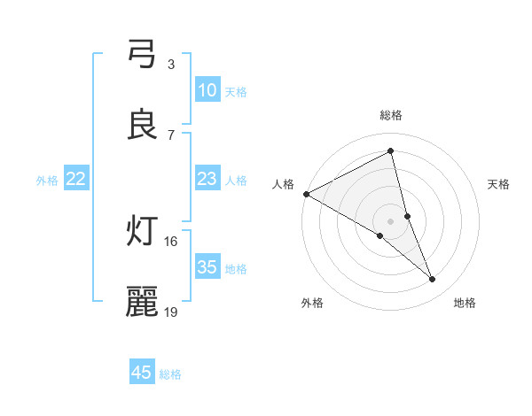 弓良 灯麗さんの総格は45画の4点!