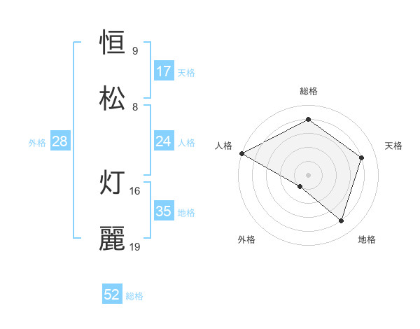 恒松 灯麗さんの総格は52画の4点!