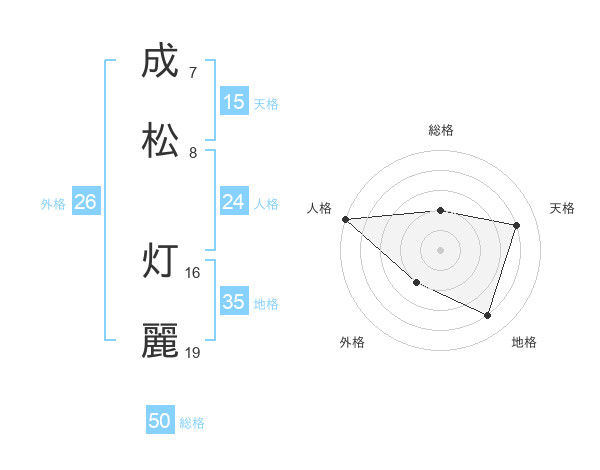 成松 灯麗さんの総格は50画の2点!