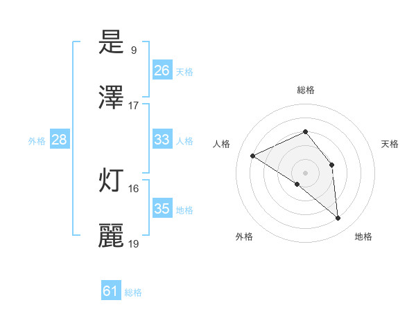 是澤 灯麗さんの総格は61画の3点!