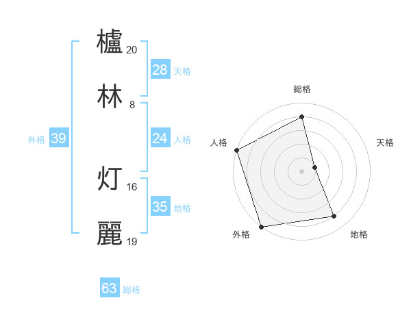 櫨林 灯麗さんの総格は63画の4点!