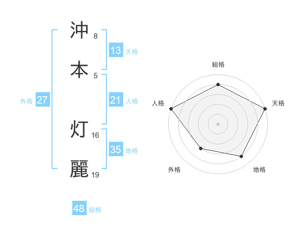 沖本 灯麗さんの総格は48画の4点!