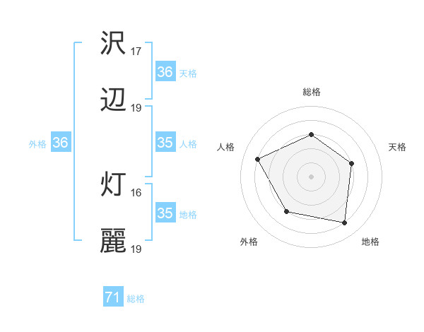 沢辺 灯麗さんの総格は71画の3点!