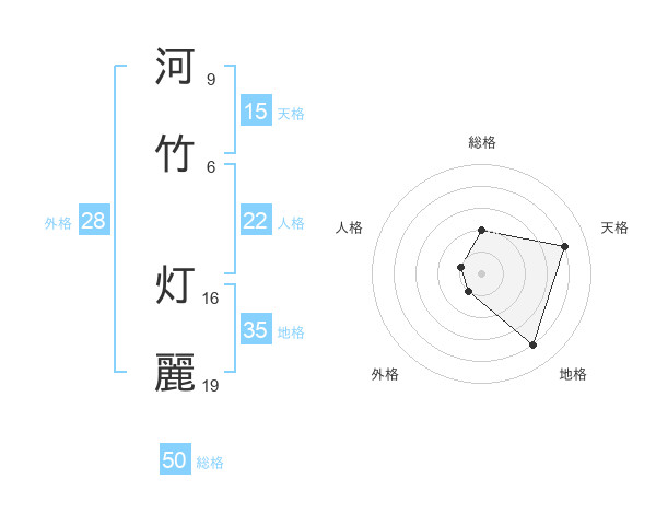 河竹 灯麗さんを姓名の画数から五運を鑑定