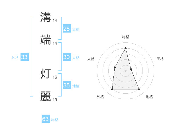 溝端 灯麗さんの総格は63画の4点!