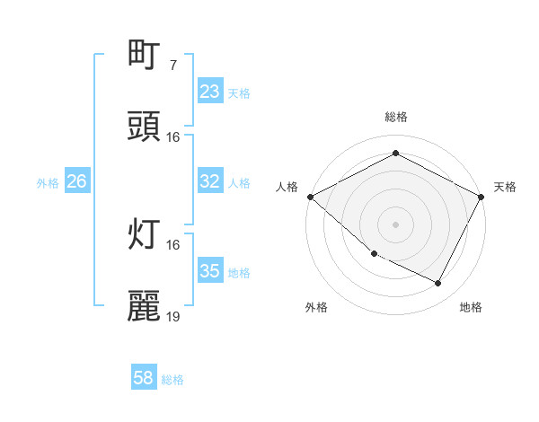 町頭 灯麗さんの総格は58画の4点!