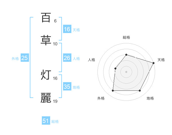 百草 灯麗さんを姓名の画数から五運を鑑定