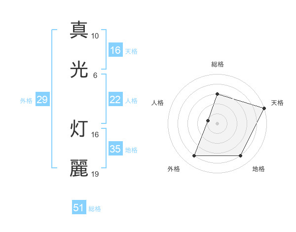 真光 灯麗さんを姓名の画数から五運を鑑定
