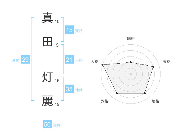 真田 灯麗さんを姓名の画数から五運を鑑定