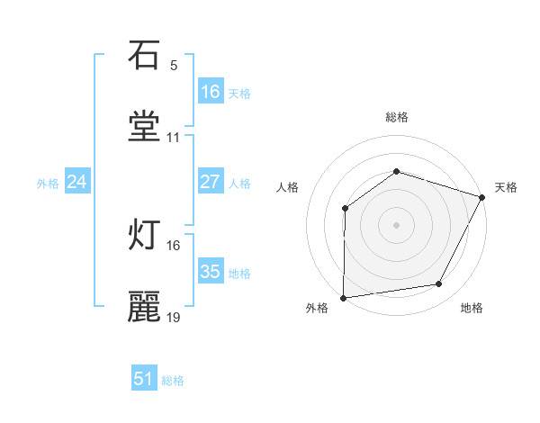 石堂 灯麗さんを姓名の画数から五運を鑑定