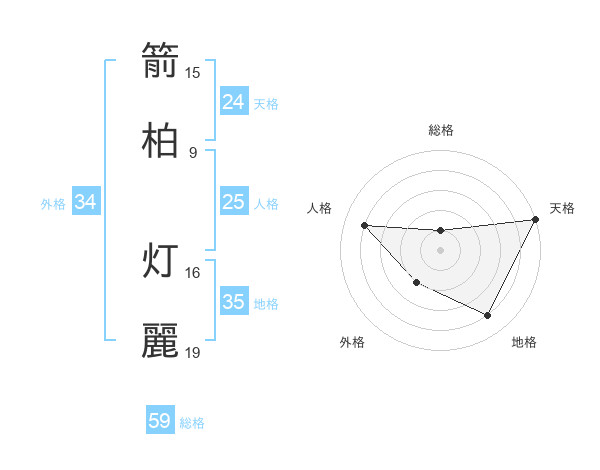 箭柏 灯麗さんの天格は24画の5点!