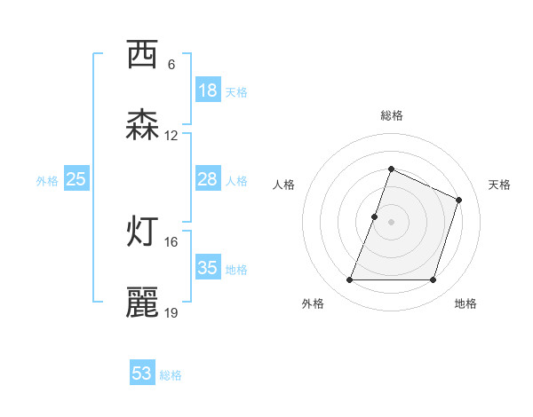 西森 灯麗さんを姓名の画数から五運を鑑定