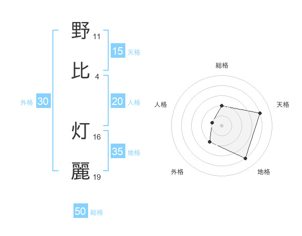 野比 灯麗さんを姓名の画数から五運を鑑定