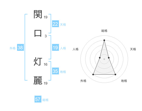 関口 灯麗さんの総格は57画の4点!