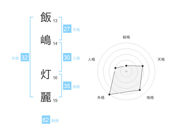 飯嶋 灯麗さんの外格は32画の5点!