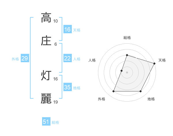 高庄 灯麗さんの総格は51画の3点!