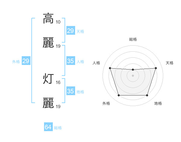 高麗 灯麗さんを姓名の画数から五運を鑑定