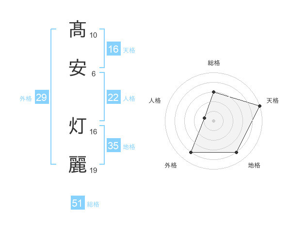 髙安 灯麗さんを姓名の画数から五運を鑑定