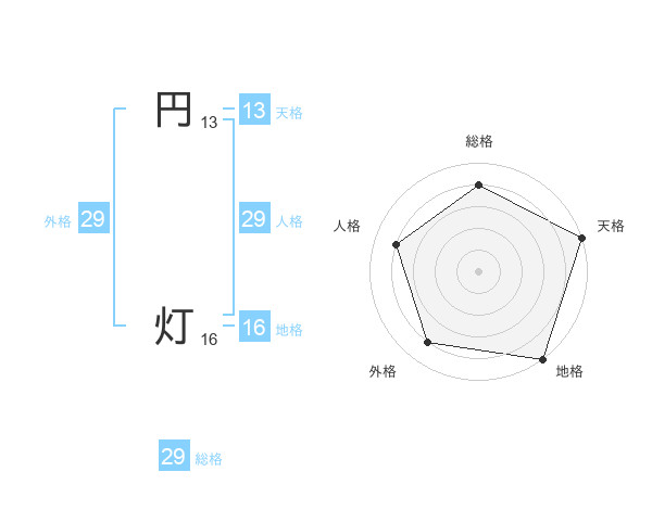 円 灯さんの外格は29画の4点!