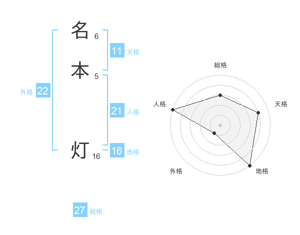 名本 灯さんの総格は27画の3点!