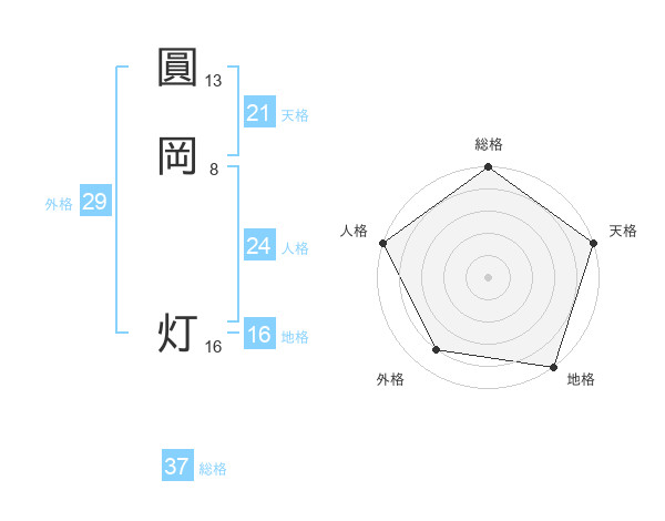 圓岡 灯さんの総格は37画の5点!