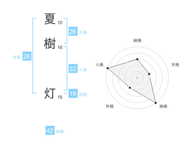 夏樹 灯さんの天格は26画の2点!