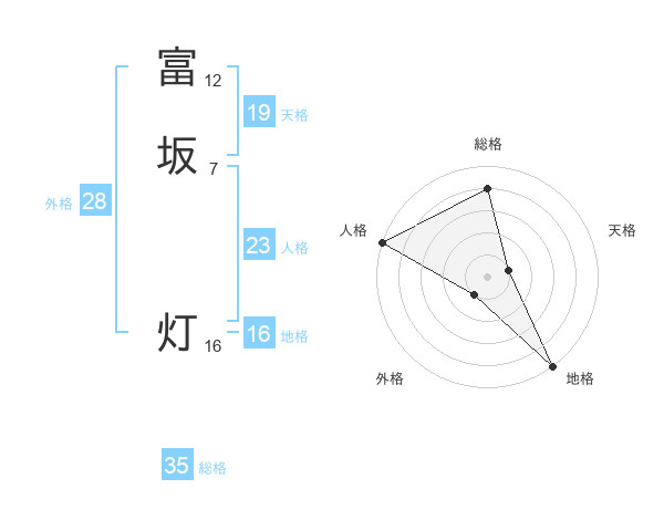 富坂 灯さんの総格は35画の4点!