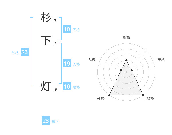 杉下 灯さんの総格は26画の2点!