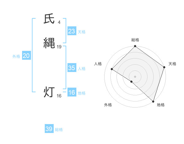 氏縄 灯さんの総格は39画の5点!