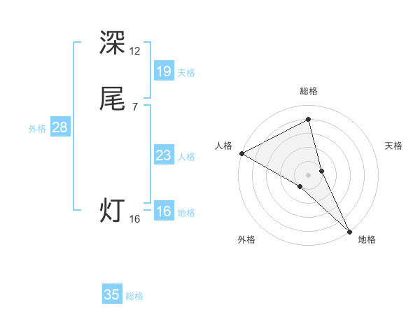 深尾 灯さんの総格は35画の4点!