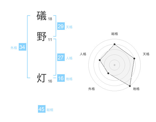 礒野 灯さんの総格は45画の4点!