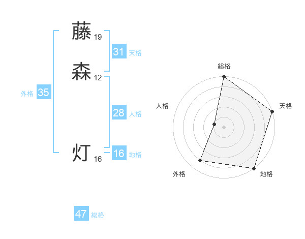 藤森 灯さんの総格は47画の5点!